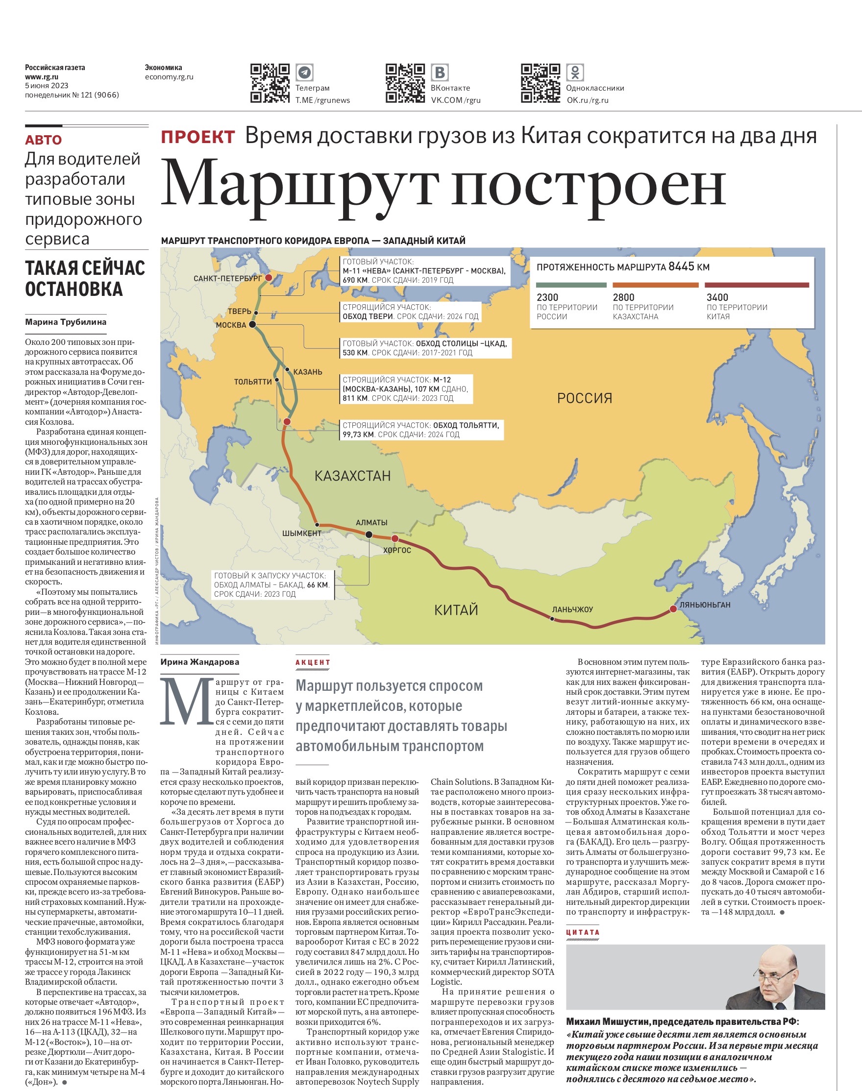 «Маршрут построен», газета «Российская газета», 05 июня, 2023